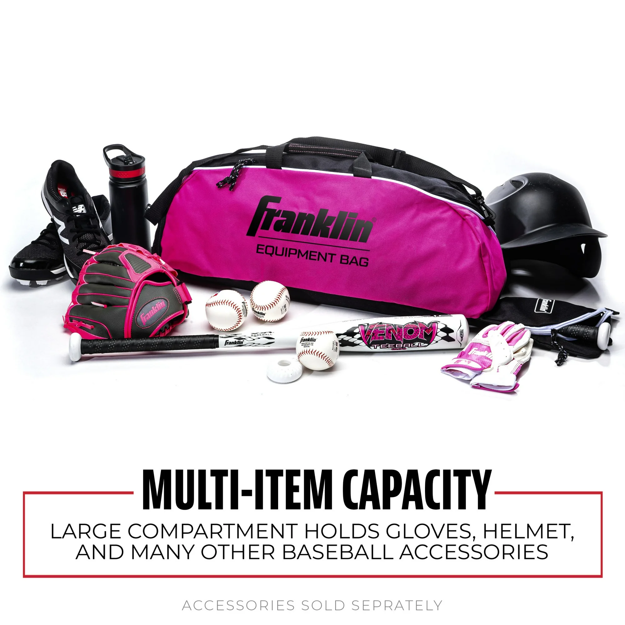 Franklin Sports Youth Baseball Bat Bag – Kids Teeball, Softball + Baseball Bag – Pink