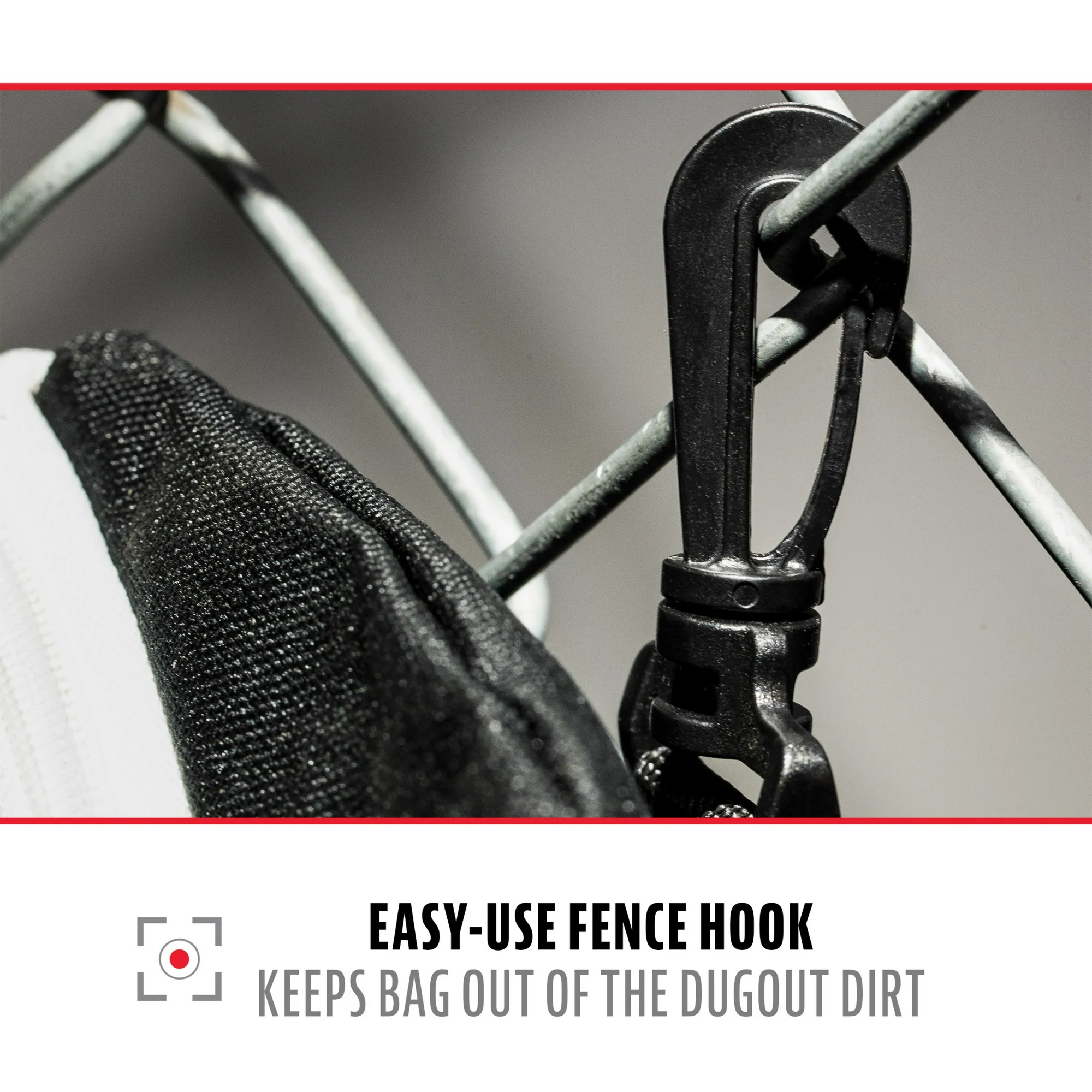 • EASY USE FENCE HOOK: Fence hook included on top of bag to hang on fence or in dugout for easy access